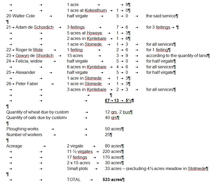 The majority of the Bishops’ tenants were personally unfree and held customary holdings by vilien tenure. This meant they were legally tied to the land, could not dispose of their holding as they pleased and were denied access to royal justice. The Bishops’ courts ruled their lives.