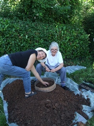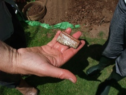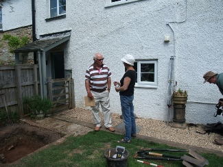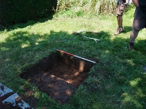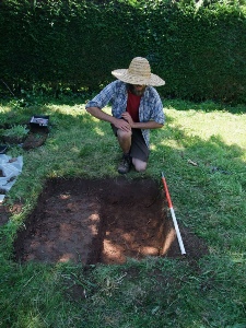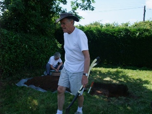 The first village dig having been so successful, everyone was keen to see what could be found at Higher Broughton Farm and the Orchard. Bob Croft had arranged for some archeological students from Richard Huish to come along for first hand experience of a dig, So the Villagers spent the morning at Higher Broughton farm, whilst the students worked at the Orchard, and in the afternoon we swapped over.