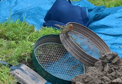 The day before there had been torrential rain but fortunately Thursday, though initially cloudy and cool, turned out to be a nice day and the sun soon came out and the rain stayed away. So, ideal conditions for our dig.