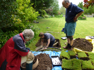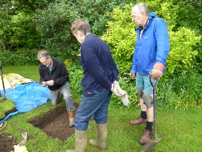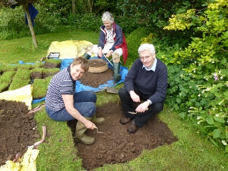 The History Group were exceedingly lucky to have the County Archaeologist, Mr Bob Croft to teach the volunteers of the History Group how to make a test pit, and to explain what were were looking for. What ,most of us thought was just another piece of rock turned out to be mediaeval pottery!!
