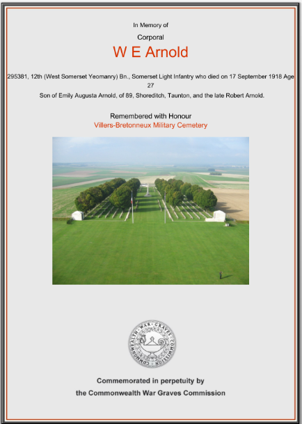 William Edward joined the West Somerset Yeomanary, 12th BN SLI, Corporal 1656, 295381