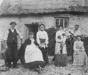 Frederick and Eliza Vile, and some of their family outside Church Farm, Thurlbear