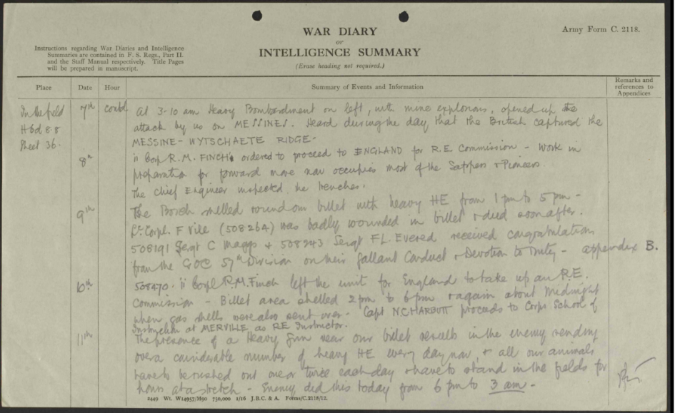 EXTRACT FROM THE WAR DIARY OF 505 FIELD REGIMENT, ROYAL ENGINEERS FOR 9 JUNE 1917