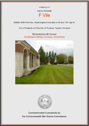 Frank Vile died 9 June 1917 in France