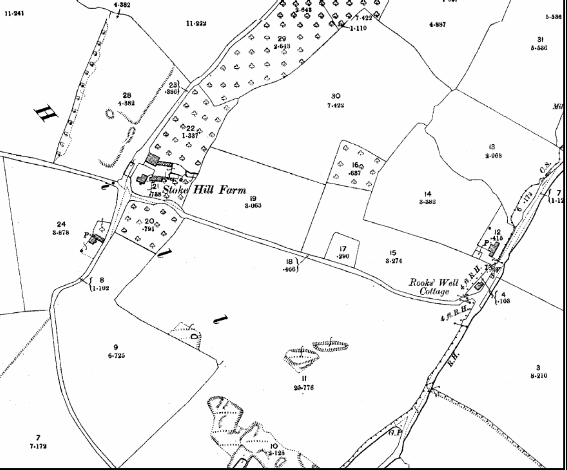 The double kilns beside Lime Kiln Cottage, Stoke Hill, bear a stone with the date 1906 and the initials “G.S.” those of George Small, builder and Limeburner of Furze Cottage, Stoke St Mary. Thomas Burt, born at Rook’s Well Cottage, Thornfalcon, in about 1890 (he died in 1963, aged about 73), was subsequently employed by Small’s to run the kilns, moving to Lime Kiln Cottage when his daughter, Mrs Mary Clarke, was six years old. He continued to operate the kilns until 1939, and apparently gave them up when the quarry in the field behind, Rooks Well Mead, was worked out.