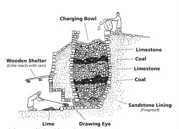 When the day's work was over, the fire would be damped down by placing a wooden flap over the opening at the base of the shaft and making it air-
